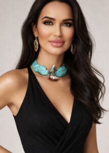 A discreet sapphire hallmark completes the composition, her authentication signature embedded within the piece.